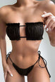 Hollow Pleated Multi-Color Split Bikini Swimsuit