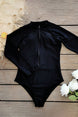 Yes, this swimsuit is a one-piece, with a long-sleeve and zipper design.
